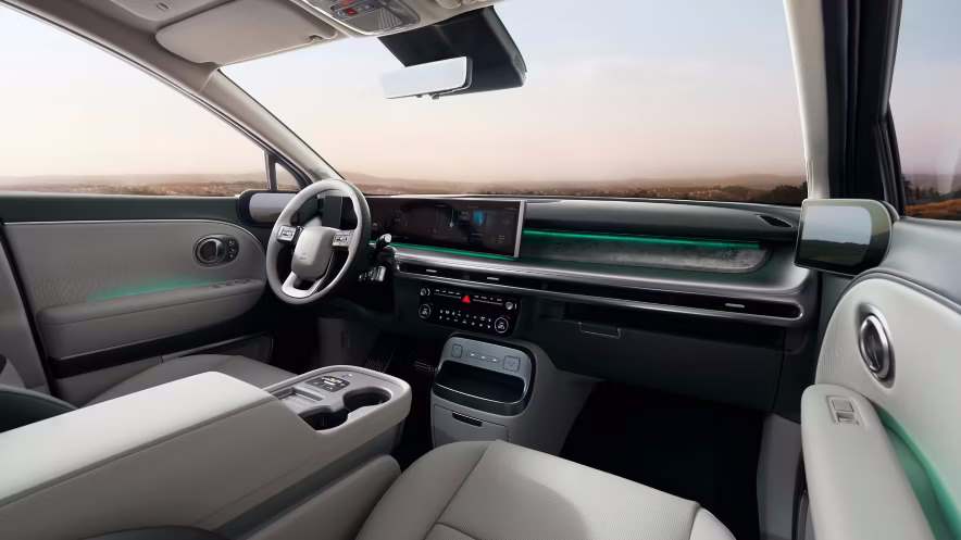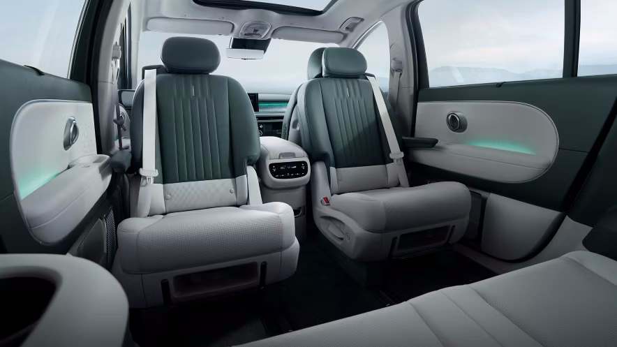 In interior, IONIQ 9 include materiale sustenabile, cum ar fi piele procesata ecologic, tesaturi reciclate si vopsele din deseuri de anvelope. Scaunele Relaxation din primele doua randuri se pot inclina complet si ofera functii de masaj pentru confort sporit pe calatorii lungi. De asemenea, scaunele din al doilea rand pot pivota, facilitand interactiunea intre pasagerii din spate.