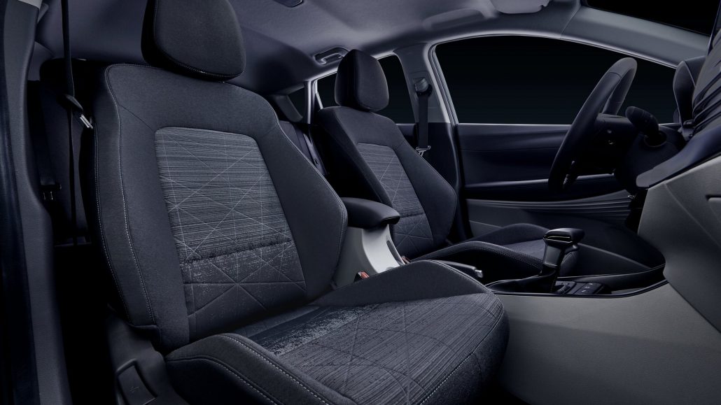 La interior, gama de culori neutre si materialele atent selectate creeaza o atmosfera placuta. BAYON este echipat standard cu tapiterie neagra.