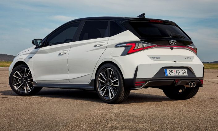 Exteriorul integreaza limbajul stilistic global Hyundai „Sensuous Sportiness”, dar si elemente de design orientate spre performanta. Sportivitatea modelului este evidentiata de bara frontala cu accente cromate, dar si de grila de tip „cascada” personalizata cu sigla N Line. In partea din spate, accentele sportive de culoare gri si bara cu detalii rafinate se combina pentru a maximiza performantele aerodinamice. Dinamismul i20 N Line este subliniat de lampa de ceata cu forma triunghiulara si de sistemul cromat de evacuare. Clientii pot alege dintre patru culori exterioare: Phantom Black, Aurora Grey, Brass, dar si Polar White – disponibil optional cu plafon Phantom Black.